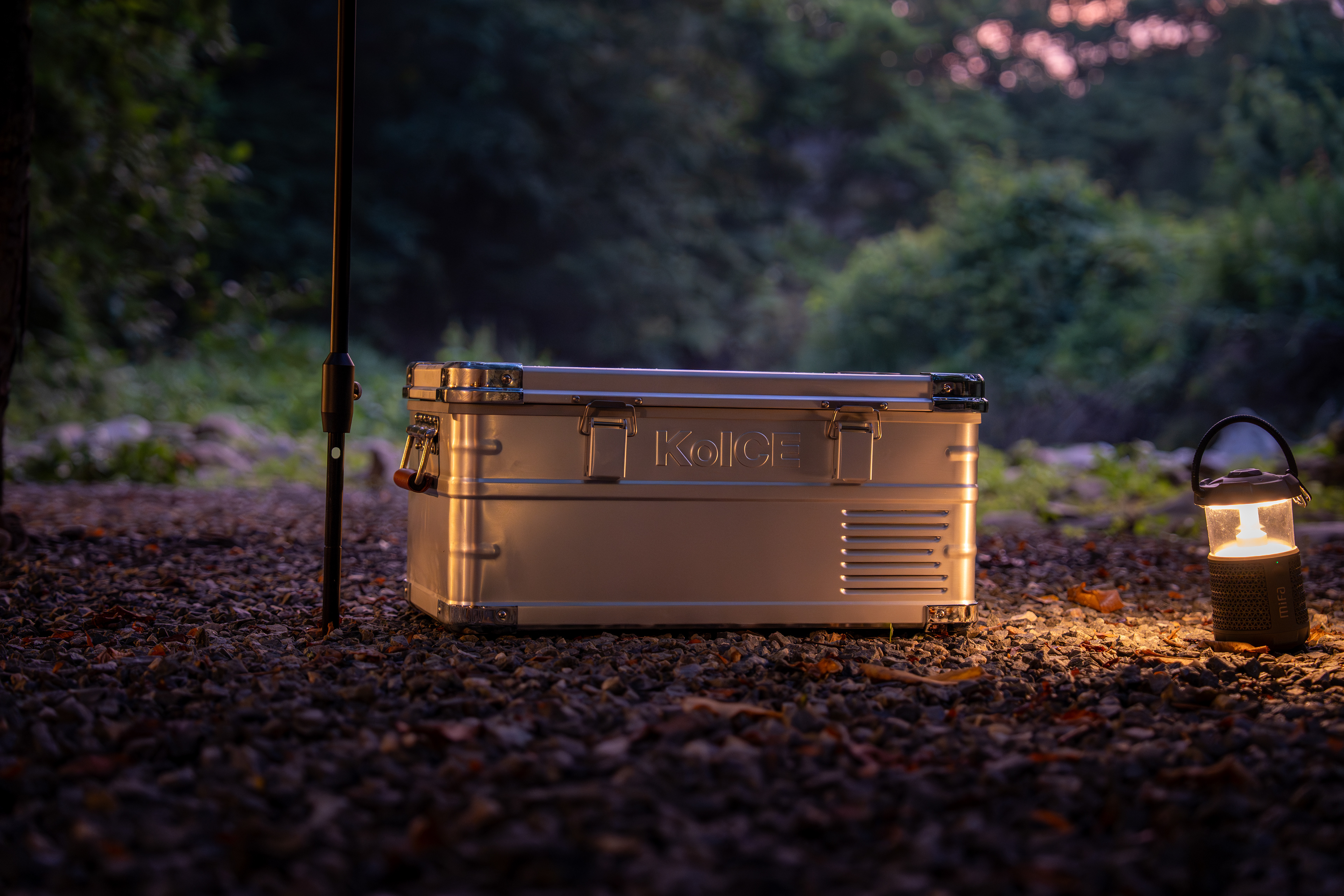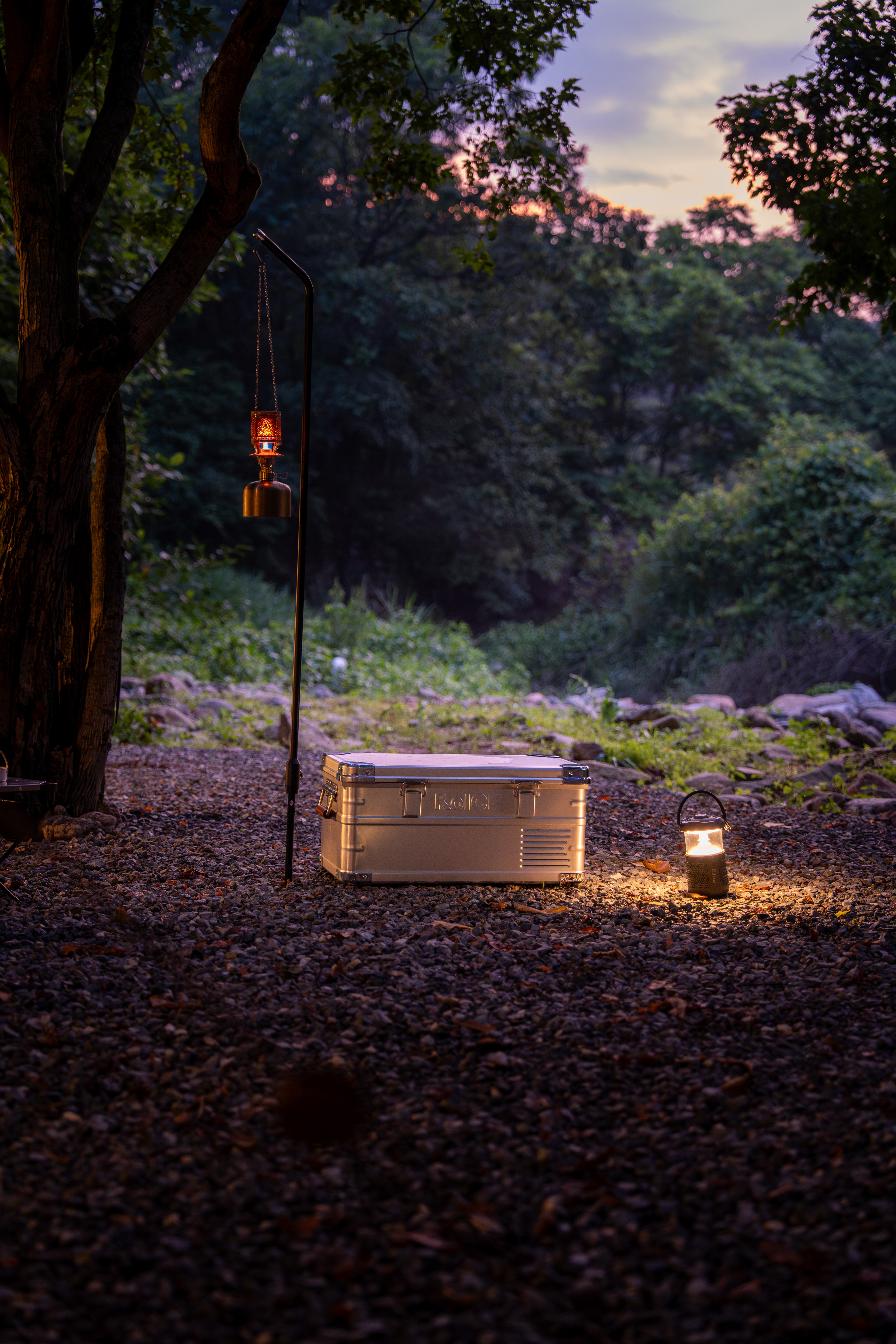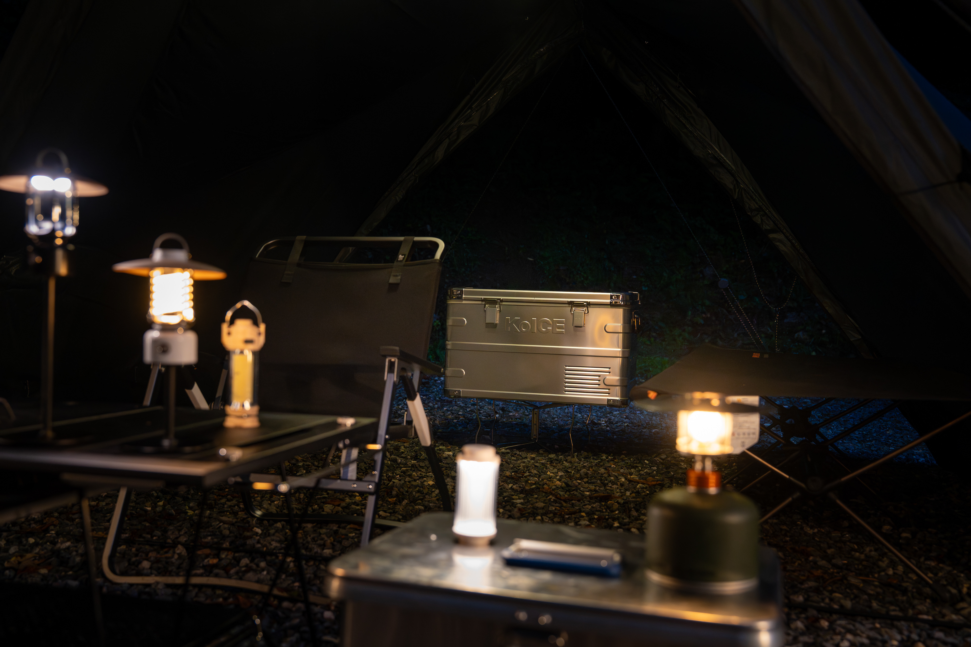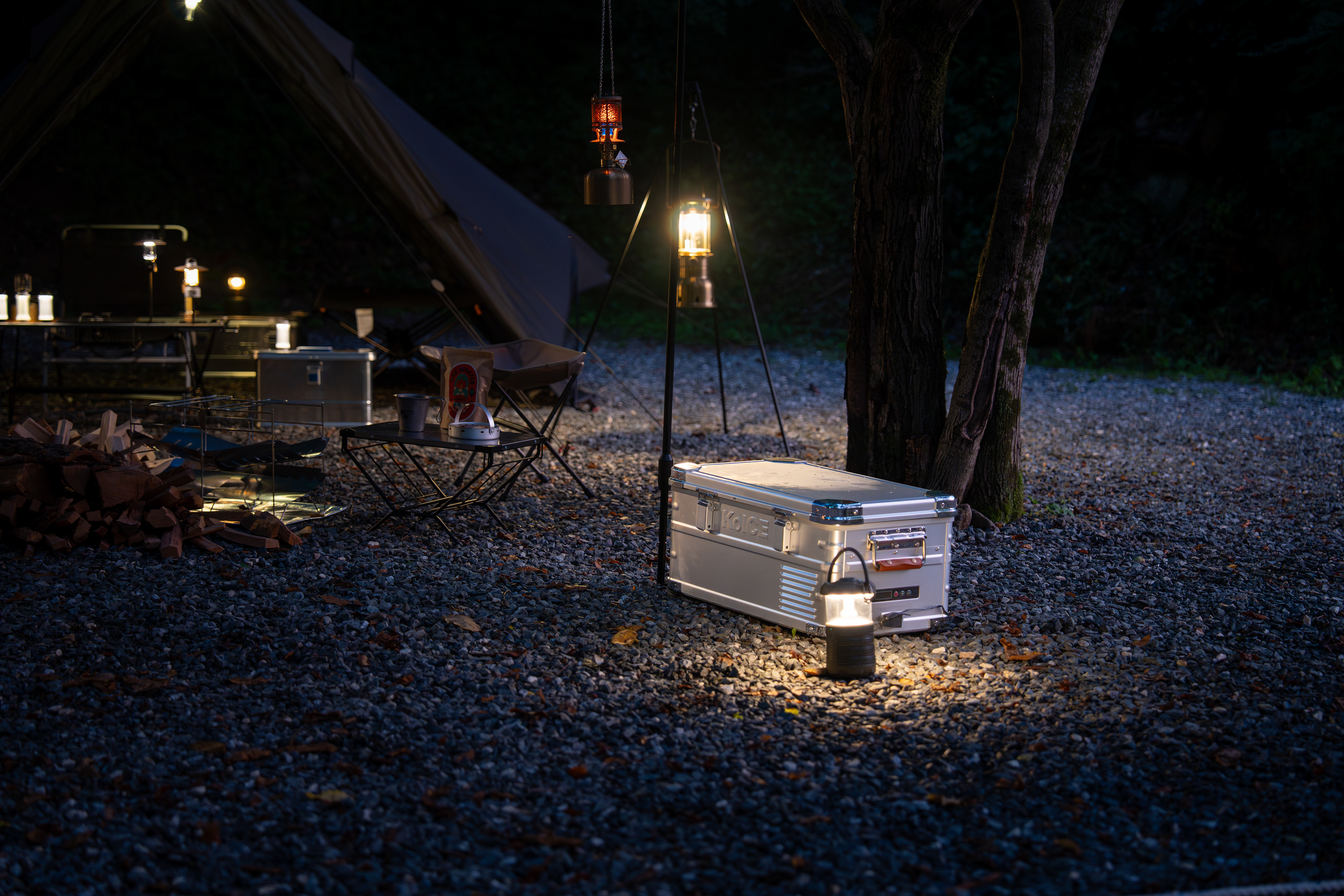 The shoot includes both daytime and nighttime staged images, featuring furniture products such as KoICE alongside the shelter.